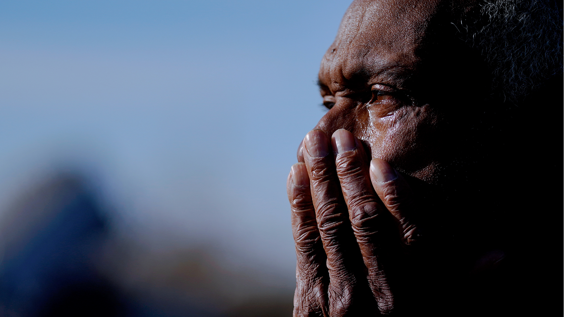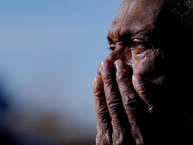 Ezell Williams cries while talking about the tornado damage caused to his properties and those of his neighbors, Sunday, March 26, 2023, in Rolling Fork, Miss. (AP Photo/Julio Cortez)